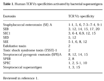 1. Nonspesifik bağlanma (AB toksin değildir): Süper antijenler antijen sunan hücrelerde MHCII’nin β bölgesi ve Th lenfositinde TCR’nin variable β (Vβ) bölgesine dışarıdan bağlanır. Diğer antijenlerde olduğu gibi sunulmayı beklemez.