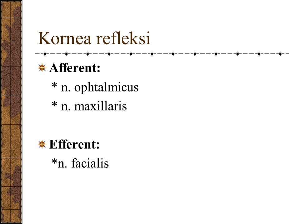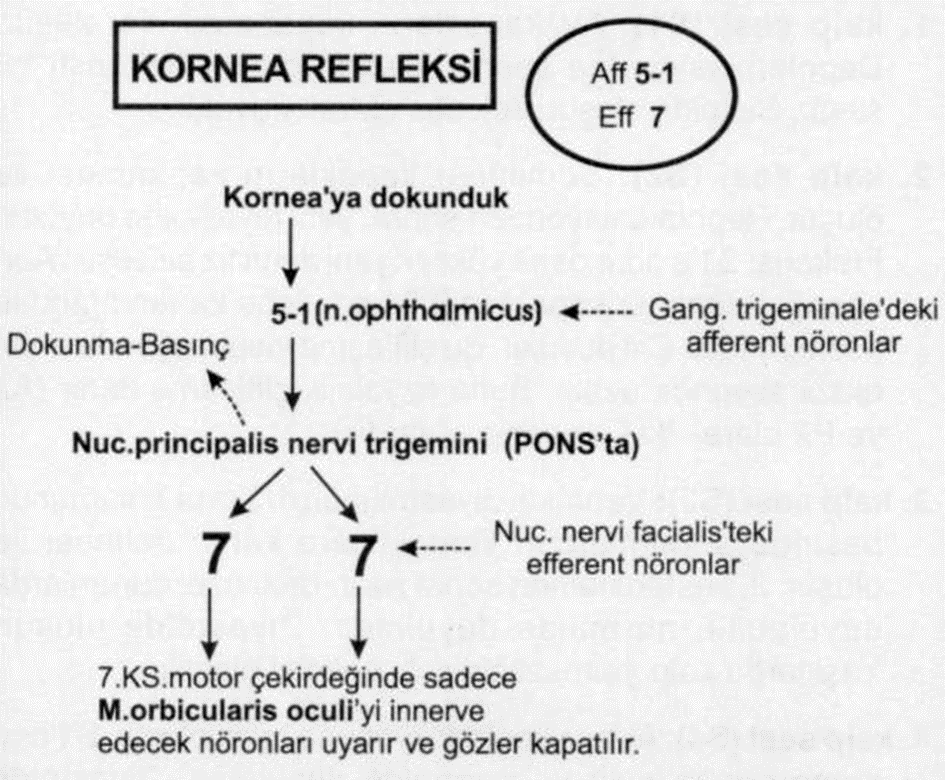 Kornea refleksinin afferent yolunu n. ophthalmicus, efferent yolunu da n. facialis yapar.