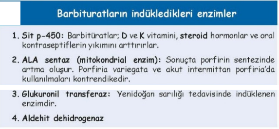1.Sit p-450: Barbitüratlar; D ve K vitamini, steroid hormonlar ve oral kontraseptif’lerin yıkımını arttırırlar.