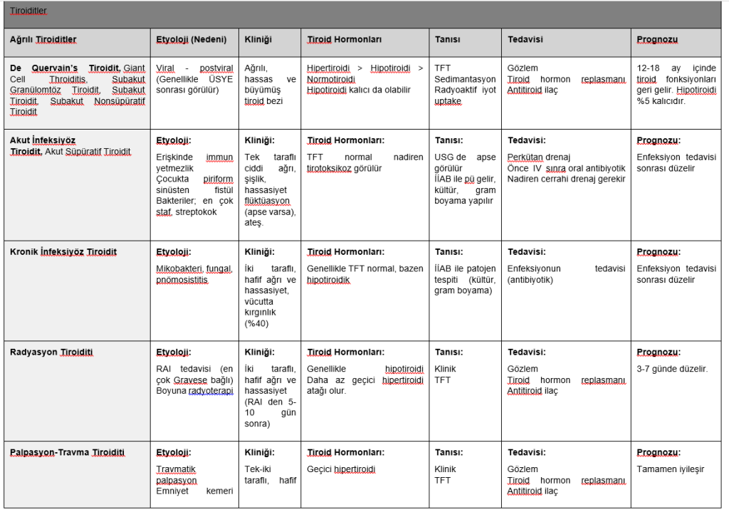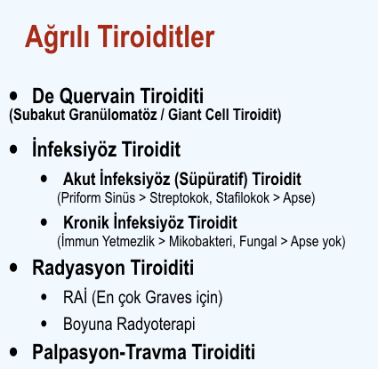 ÜSYE’den sonra ortaya çıkar.Etkenler staf.,strep.vs… olabilir. Tiroid bezi ağrılı ve şiştir.
