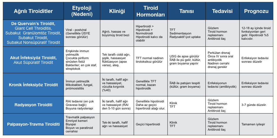 Infeksiyöz troiditler olur. Streptokok, stafılokok, mikobakterium tuberkülozis ya da mantarlar etken olabilir.
