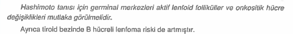 Otuz iki yaşında kadın hastada hipotroidi saptanıyor.Tiroidin histopatolojisinde lenfosit infiltrasyonu, lenfoid foliküller ve Hurthle hücre metaplazisi izleniyor.