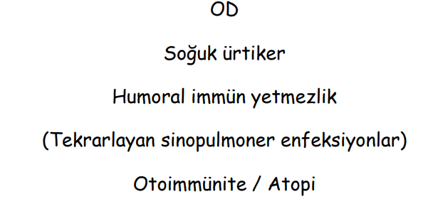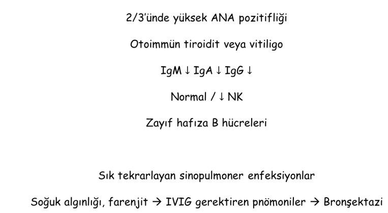 Otoimmün tiroidit ve vitiligo oluşabilir. Tekrarlayan enfeksiyonlar bronşektazi gelişimine yol açabilir .