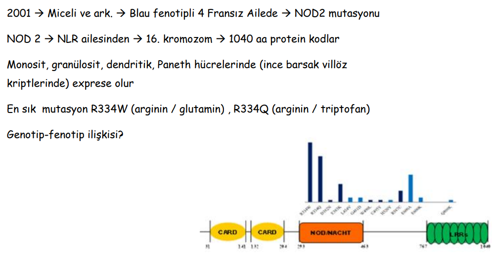 Blau sendromunda, genetik kusur aşırı aktivasyona ve yaygın granülomatöz inflamasyona ve doku hasarına yol açan inflamatuar yanıtın zayıf kontrolüne yol açıyor gibi görünmektedir.