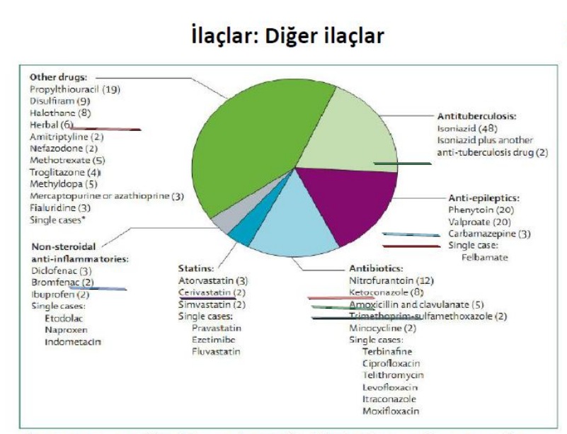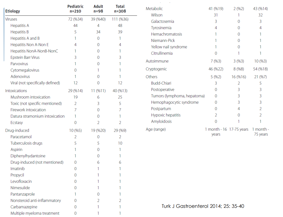 Birinci sıradaki neden viruslar; %30; Çocuklarda Hepatit A, yetişkinde Hepatit B