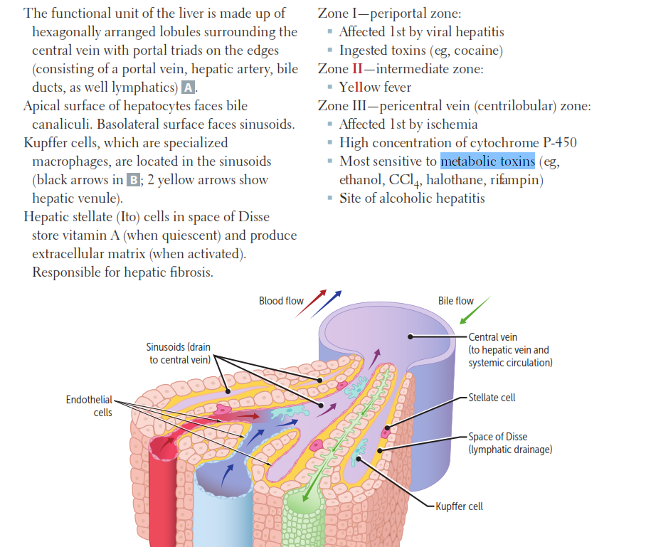 Bölge 3 (sentrilobüler), iskemik hasar, toksik etkiler, karbon tetraklorür maruziyeti veya kloroform alımı ile ortaya çıkar. Akut asetaminofen doz aşımında, çoğunlukla en yüksek düzeyde P450 mikro enzimlerine sahip olan Bölge III’te zehirlenme meydana gelir.
