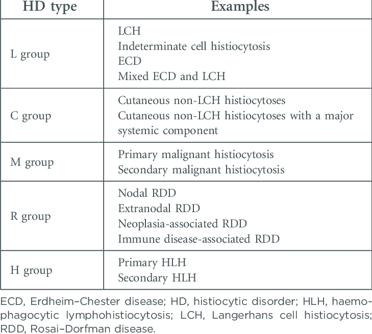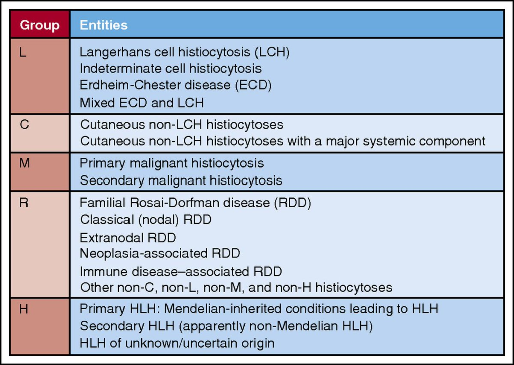 Alternatif olarak, histiyositoz aşağıdaki gruplara ayrılabilir: