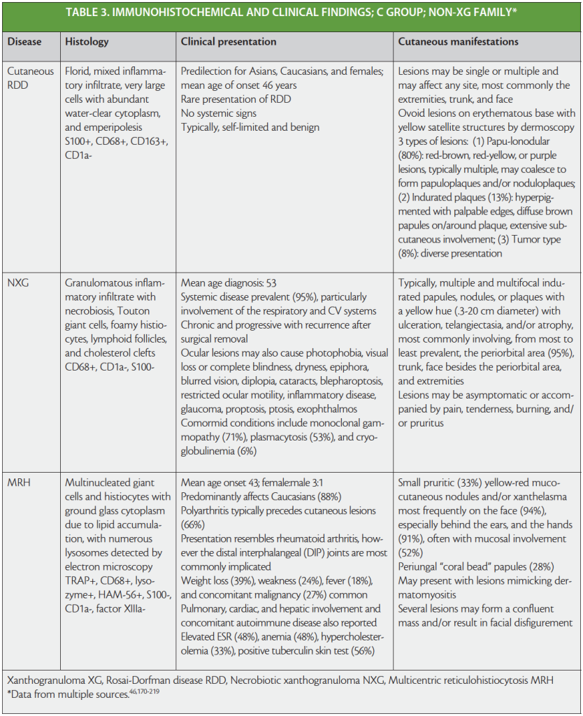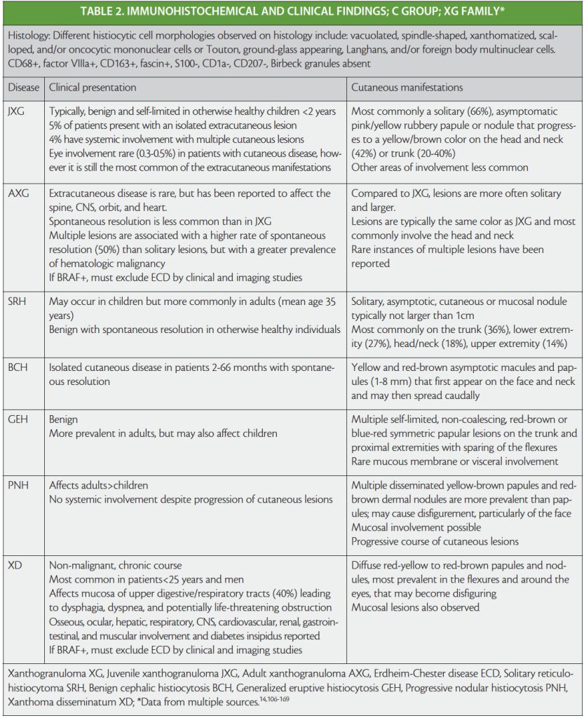| Jüvenil ksantogranüloma (JXG) | II | Langerhans hücreli olmayan histiyositoz |