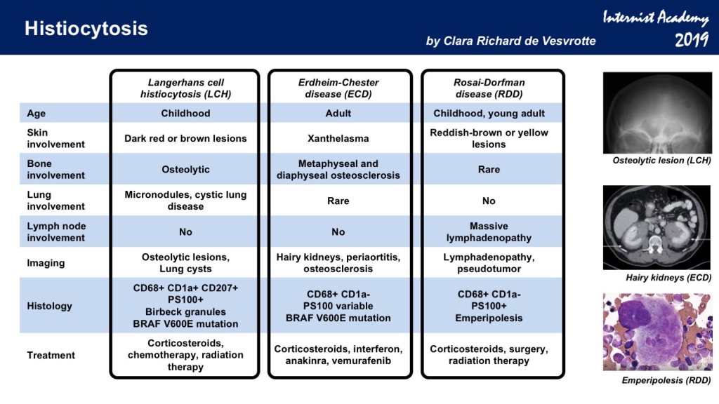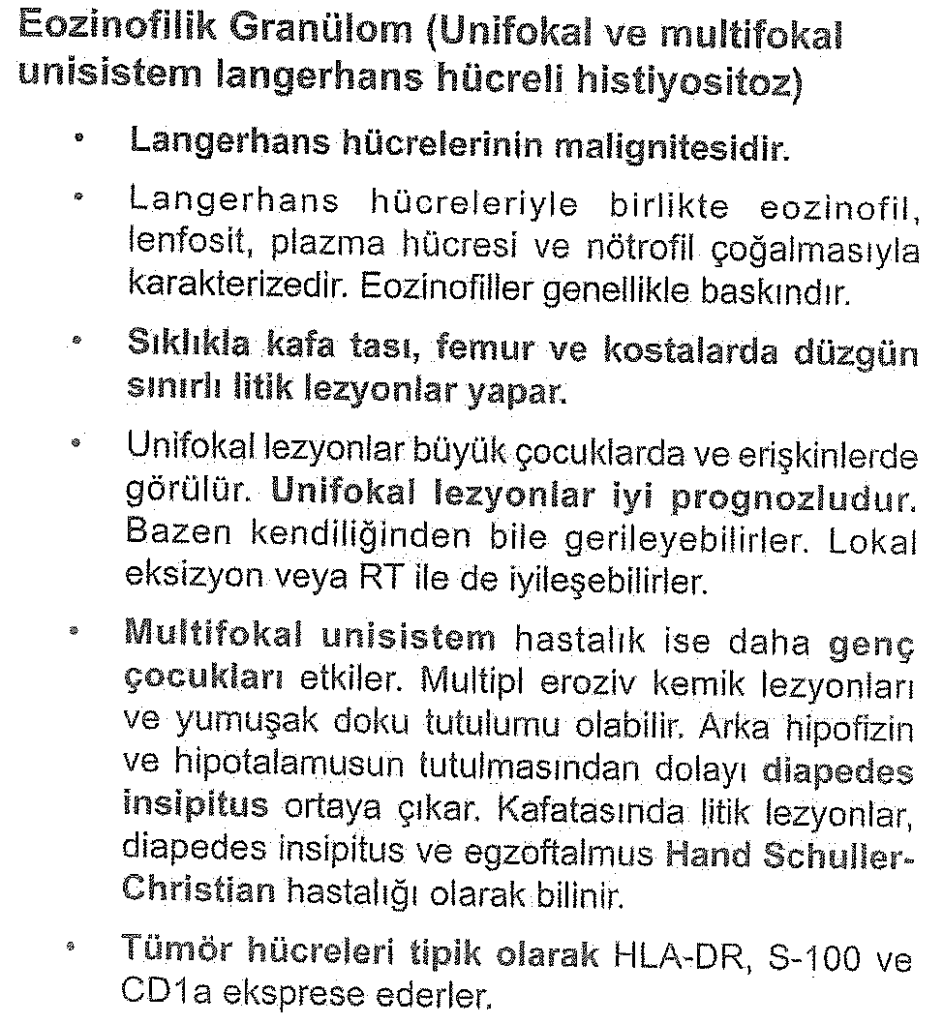 Eozinofilik granülom (kemiğin soliter lezyonu) Hand-Schüller-Christian hastalığı ve Letterer-Siewe hastalığını içerir. Antijen sunan langerhans hücrelerinin klonal proliferasyonudur.