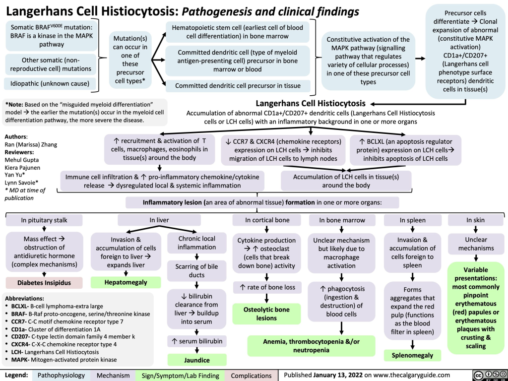 Kesin tanı langerhans hücreleri stoplazmasında Birbeck granüllerinin veya hücrede CD207 ekspresyonu veya CD1a pozitifliğinin gösterilmesi ile konur.