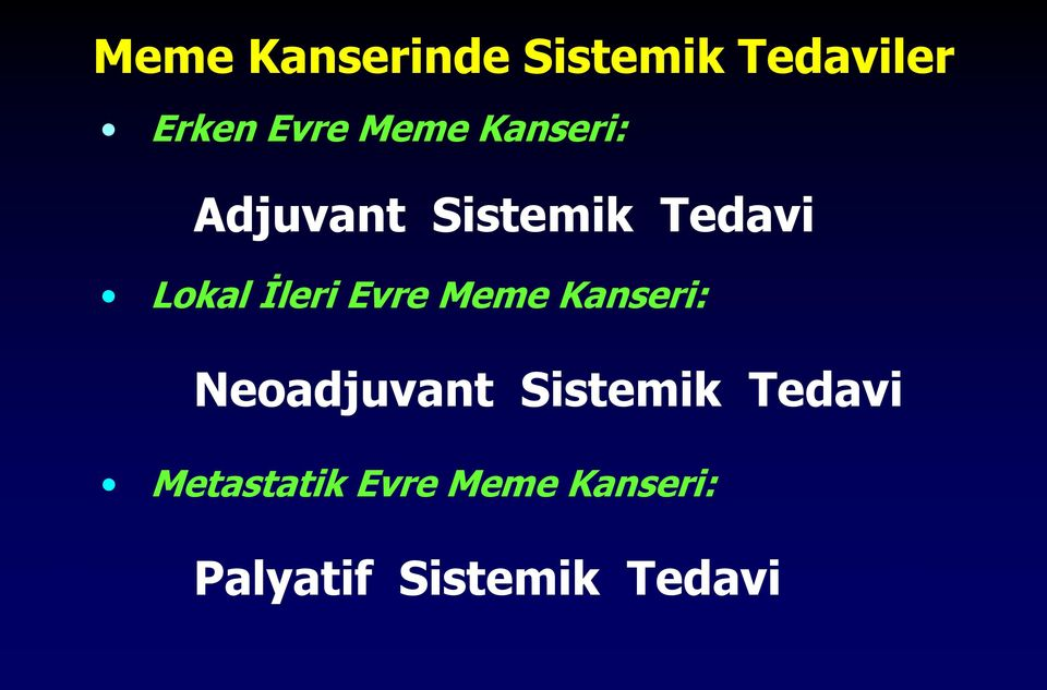Klinik Evre II A ve II B büyük tümörler ile T3 N1 Mo (Evre III A) tümörler Lokal İleri Evre Meme Kanseri olarak kabul edilir ve bugrup hastada neoadjuvant sistemik tedavi uygulanır.