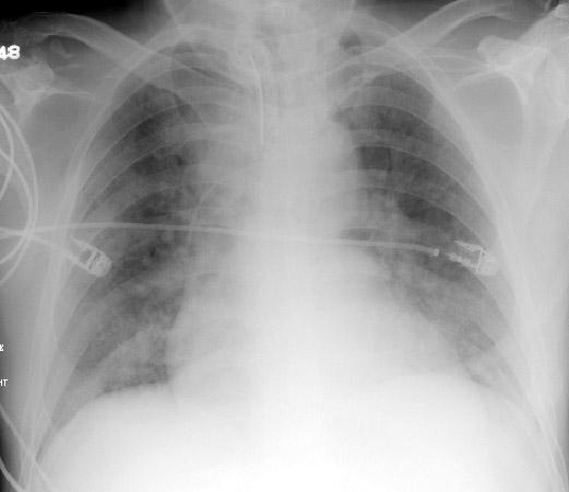 1- Genişlemiş üst lob damarları (sefalizasyon); Sefalizasyon, kanın üst lob damarlarına yeniden dağıtılması anlamına gelir. Hidrostatik basınç 10 mm Hg’yi aştığında, sıvının akciğerin interstisyumuna sızmaya başladığı varsayılmıştır. Bu fazla sıvı başlangıçta muhtemelen yerçekiminin bir sonucu olarak alt lob damarlarını sıkıştırır. Bundan sonra, daha büyük hacimde kan dağıtmak için üst lob damarları görevlendirilir. Daha fazla kan taşımak için üst lob damarlarının boyutu artar.