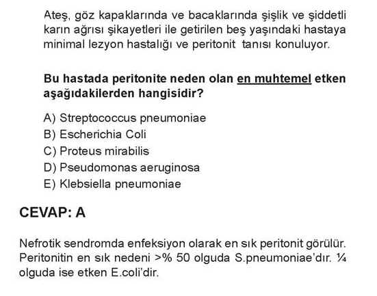 özellikle nefrotik sendromlu çocuklarda sık görülür ve en sık etken pnömokoklardır.