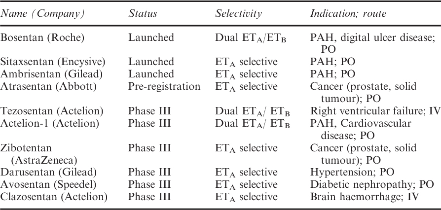 Macitentan, ambrisentan ve bosentan ağırlıklı olarak pulmoner arteriyel hipertansiyon tedavisinde kullanılırken , atrasentan deneysel bir anti- kanser ilacıdır.