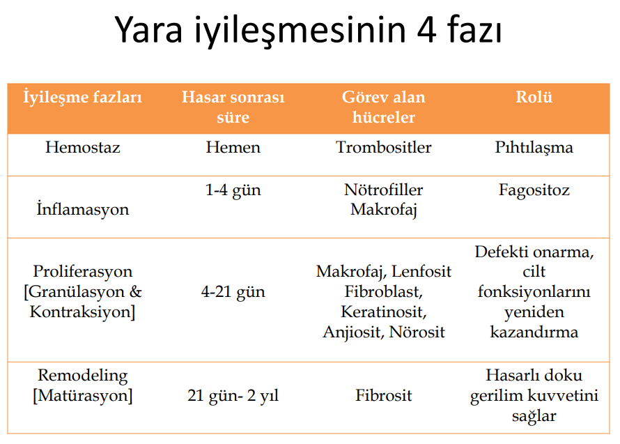 Doku hasarı sonrası sitokinler hemen salınmaya başlar. Sitokinler hemostaz ve iyileşme sürecindeki kompleks olayları yönlendirirler