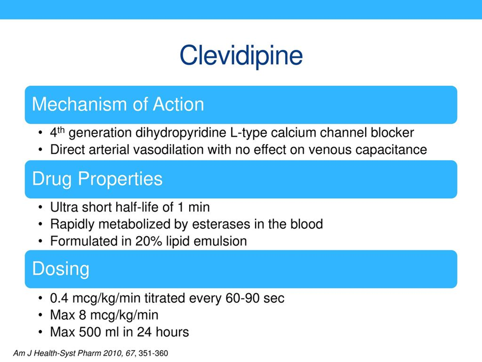 Ultra kısa etkili L tipi kalsiyum kanal blokörüdür. Hipertansif kriz tedavisinde sadece intravenöz kullanılır.