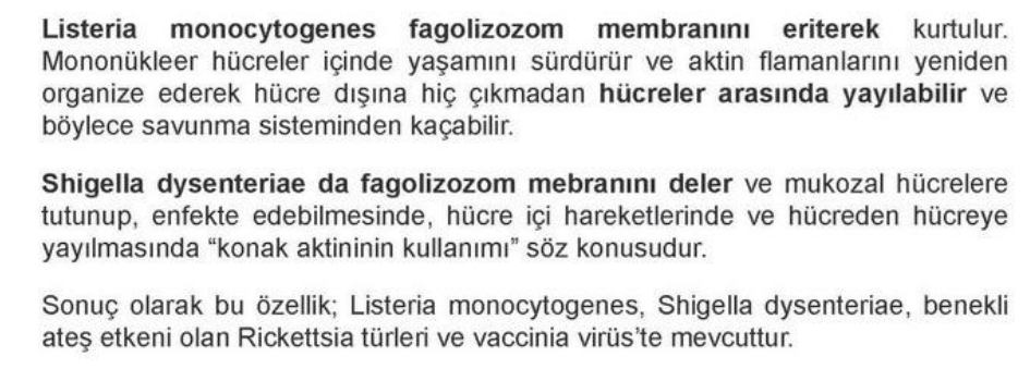 Fagolizozom membranı üzerinden etki eden patojenler; listeria monocytogenes, shigella dysenteria, benekli ateş etkeni riketssia ve vaccinia virüs dür.