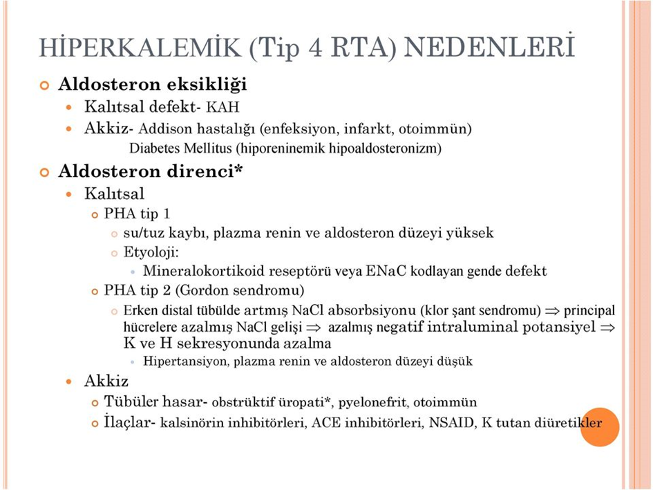 GFR normaldir, renin dusuktur ve buna ragmen hipertansiyon, hiperkalemi ve hiperkloremik metabolik asidoz gorulur.
