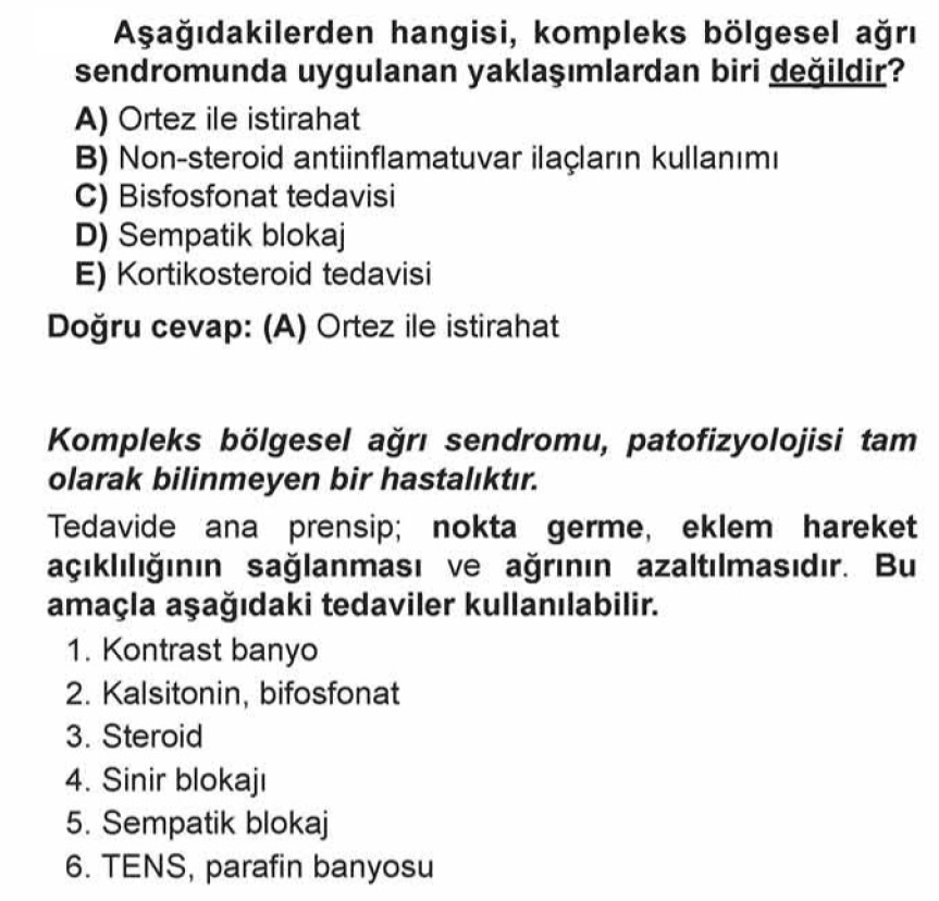 Soruda birçok ipucu verilmiştir ancak tüm bu ipuçlarından özellikle Beta bloker,Sempatolotik ajan ve sempatik ganglion blokajı ile tedavi edilebilen kronik ağrı nedeni olarak muhakkak hatırlanmalıdır. X-RAY görüntülerinde benekli osteoporoz formdan zamanla diffüz osteoporoza doğru geçiş gösterdiği de ayrıca bilinmelidir.