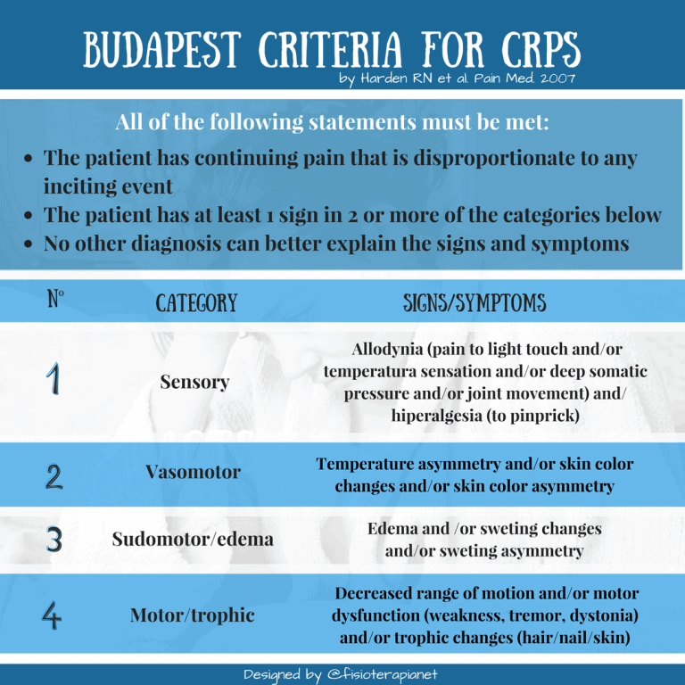 | Type I | CRPS without evidence of nerve damage in the affected limb. Secondary to injury/trauma. This accounts for about 90% of CRPS. | Reflex sympathetic dystrophy, RSD, Sudeck’s atrophy |