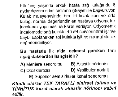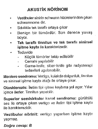 Akustik nörinom tanısında altın standart; Godolinyumlu MRI