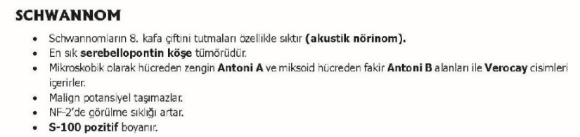 Genellikle VIII. kranyal sinirin süperior vestibüler dalından kaynaklanan akustik nörinomlar erişkinlerde en sık görülen intrakranyal schwannomlardır. Çocukluk çağında nadir görülürken, büyük çoğunluğu örofibromatozis Tip-2 (NF2) ile ilişkilidir ve bilateraldir.