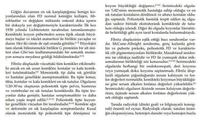 %0.5 oranında maligniteye dönüşme potansiyeli olan FD’nin özellikle poliostotik formları yakın takip edilmelidir
