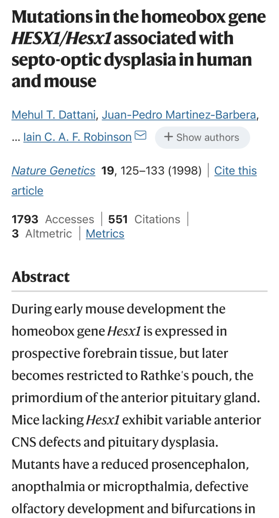 Septo-optic displazi yani Morsier sendromu ve Pickardt-Fahlbusch sendromu gelişiminden sorumlu gen, HESX1 yani Homeobox expressed in ES cells yani homeobox protein ANF 26 Temmuz 2023 yazar drtanjuy