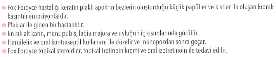 Fox-Fordyce hastalığı nadir görülen, sporadik, apokrin ter bezi retansiyonu sonucu oluan, kalıntılı, foliküler papüllerle karakterize bir dermatozdur.