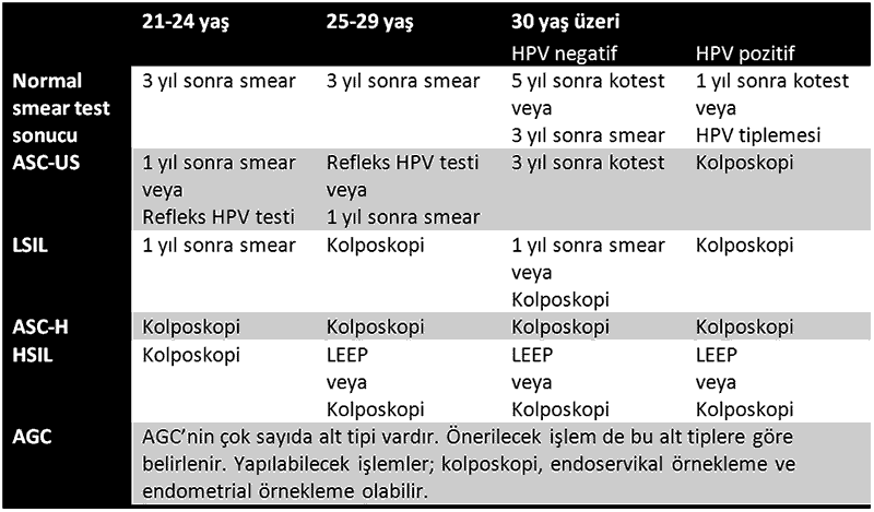 1. 6 ve 12 ay sonra iki kez smear tekrarı veya