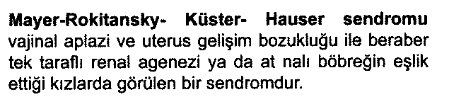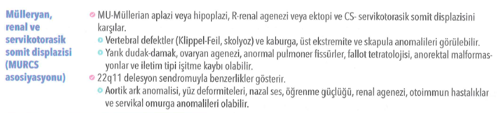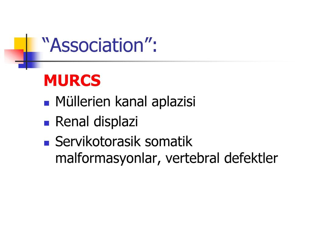 MURCS birlikteliği Müller kanal aplazisi, renal aplazi ve servikotorasik displazinin beraberliği olarak bildirilmiştir.