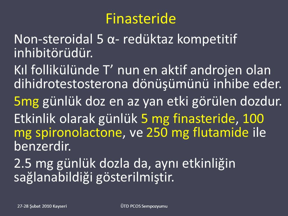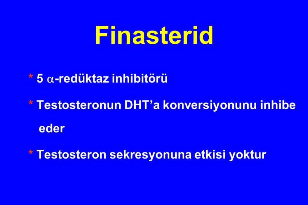 Finasterid‛in antiandrojenik etki mekanizması, Selektif Tip 2 5α Redüktaz inhibisyonudur.