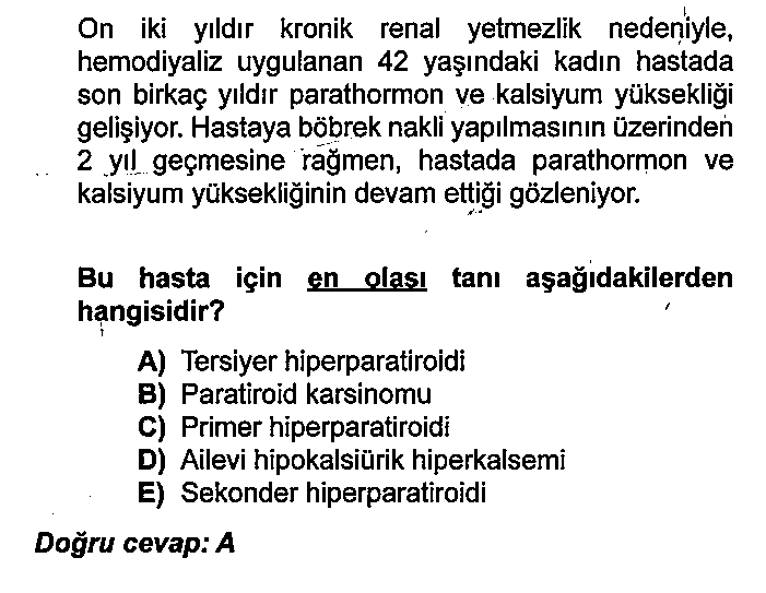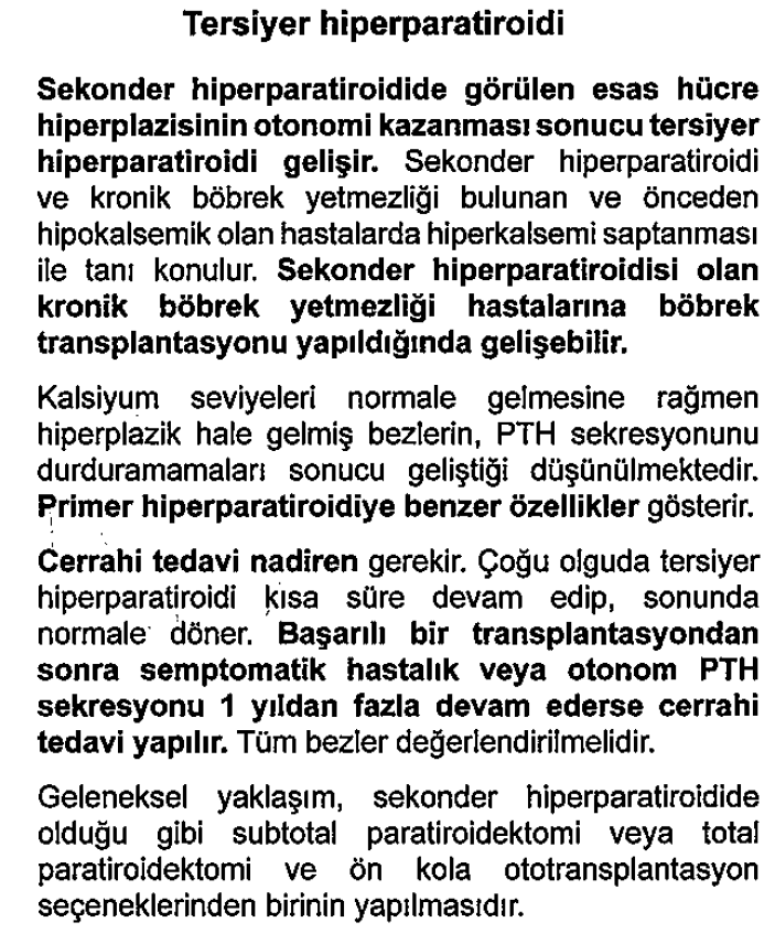 Tersiyer hiperparatiroidinin en sık nedeni; Sekonderin otonomi kazanması