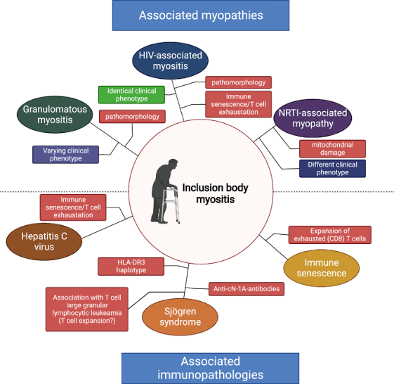 Yaşlı erişkinlerde en sık görülen inflamatuar kas hastalığıdır. Hastalık, hem proksimal kasların ( gövdenin üzerinde veya yakınında bulunan ) hem de distal kasların (ellere veya ayaklara yakın), en çok parmak fleksörlerinde ve diz ekstansörlerinde yavaş ilerleyen zayıflık ve zayıflama ile karakterize edilir .