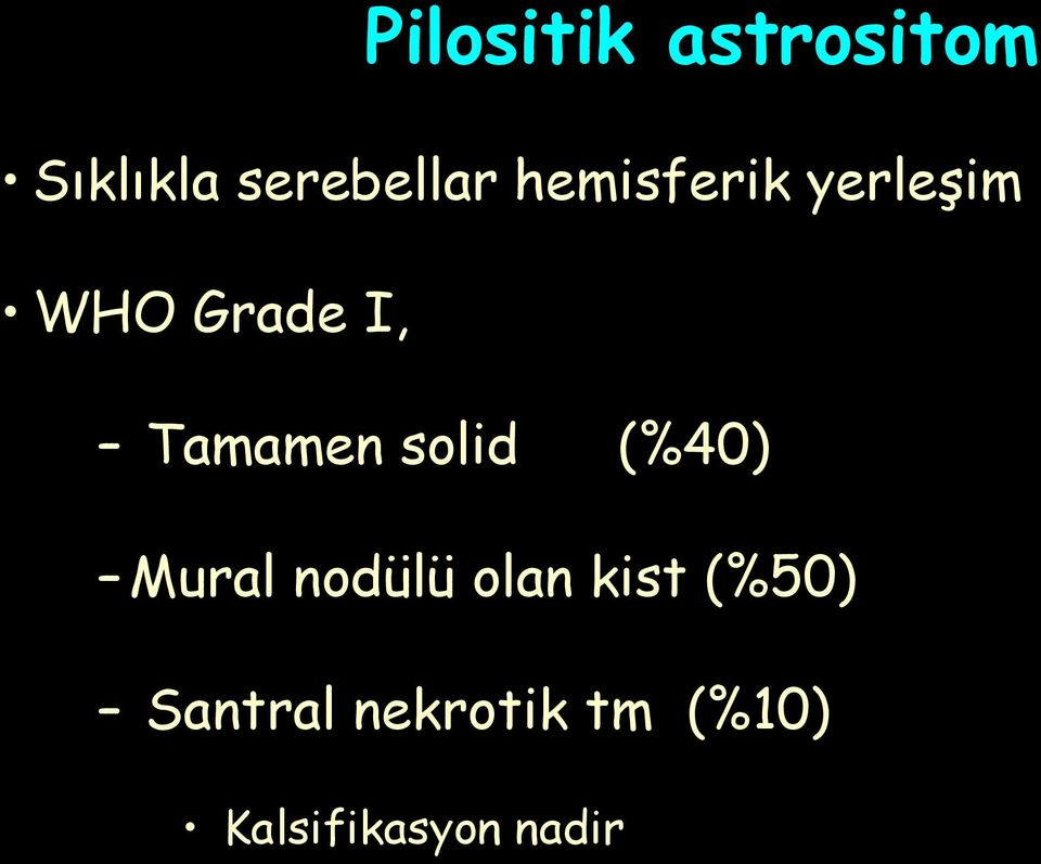 Pilositik astrositom (PA) diffuz astrositom ile karşılaştırıldığında iyi sınırlı bir neoplazmdır.
