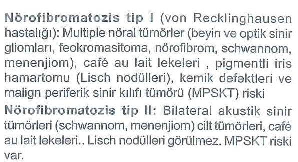 Nörofibromatozis tip 1, multisistem tutulumu, benign ve malign tümörlerde normal popülasyona göre artmış