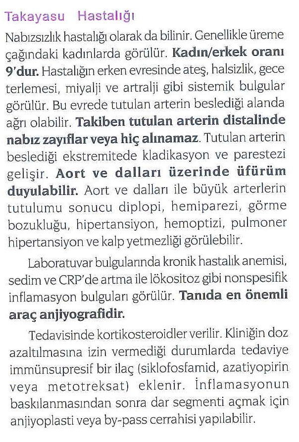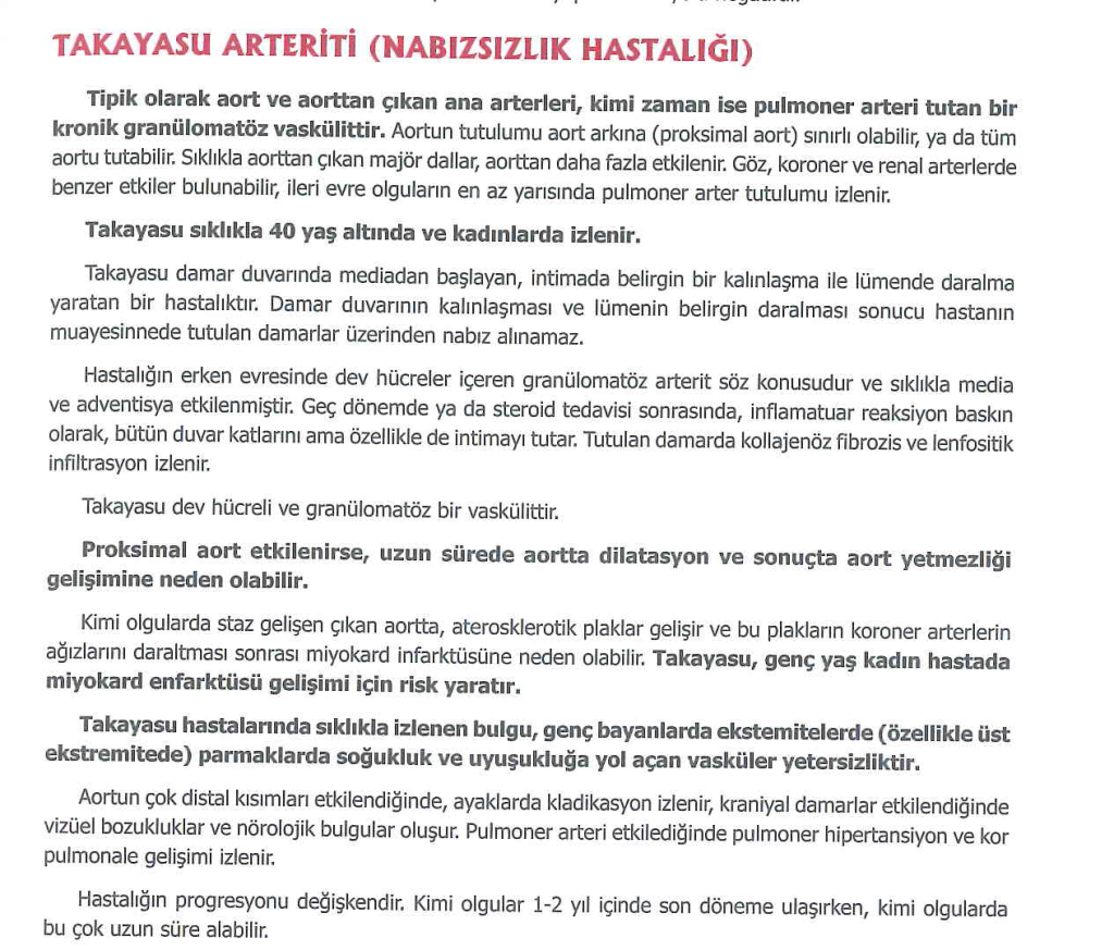 TAKAYASU ARTERİTİ (NABIZSIZLIK HASTALIĞI)