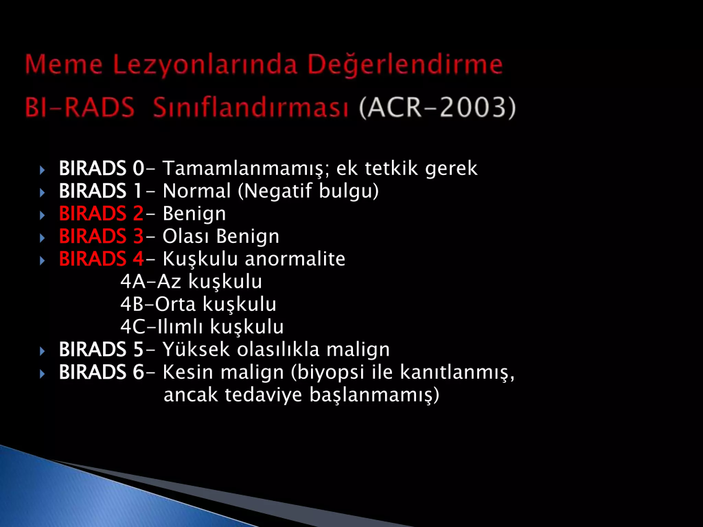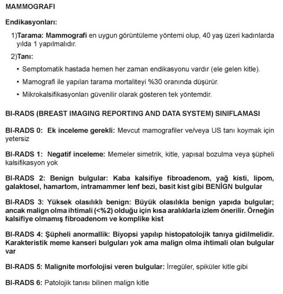 Mamografi’ de BI–RADS (Breast Imaging Reporting and Data Systems) değerlendirmesi