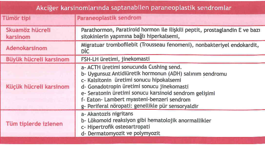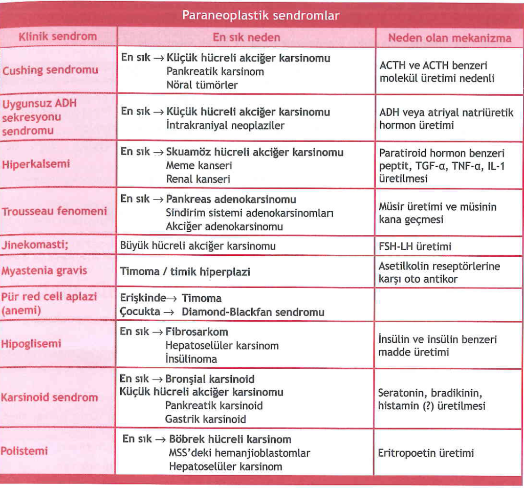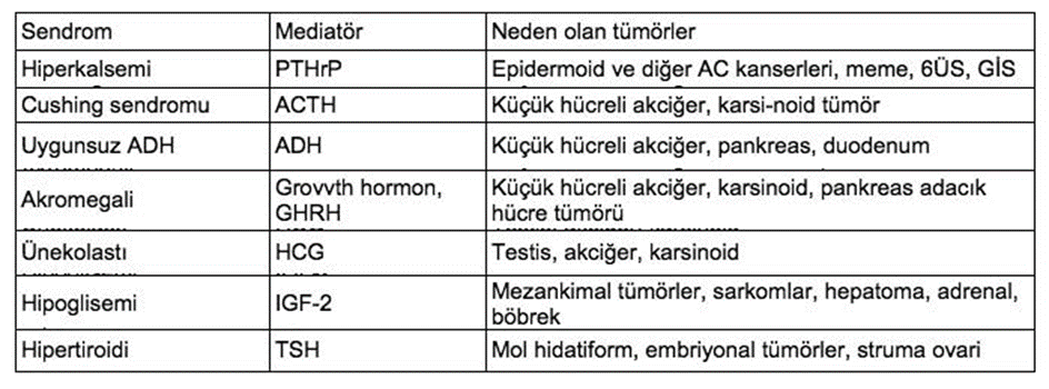 Bazı paraneoplastik sendromlar ve neden olan tümörler