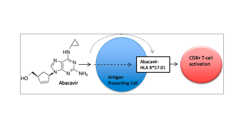 Abakavirin bu tip 4 aşırı duyarlılık reaksiyonuna neden olduğu mekanizma, HLA-B*57:01 proteininin antijen bağlama yarığına bağlanarak yeni, “kendinden olmayan” antijenlerin bağlanmasına ve T hücrelerine sunulmasına izin vermesidir