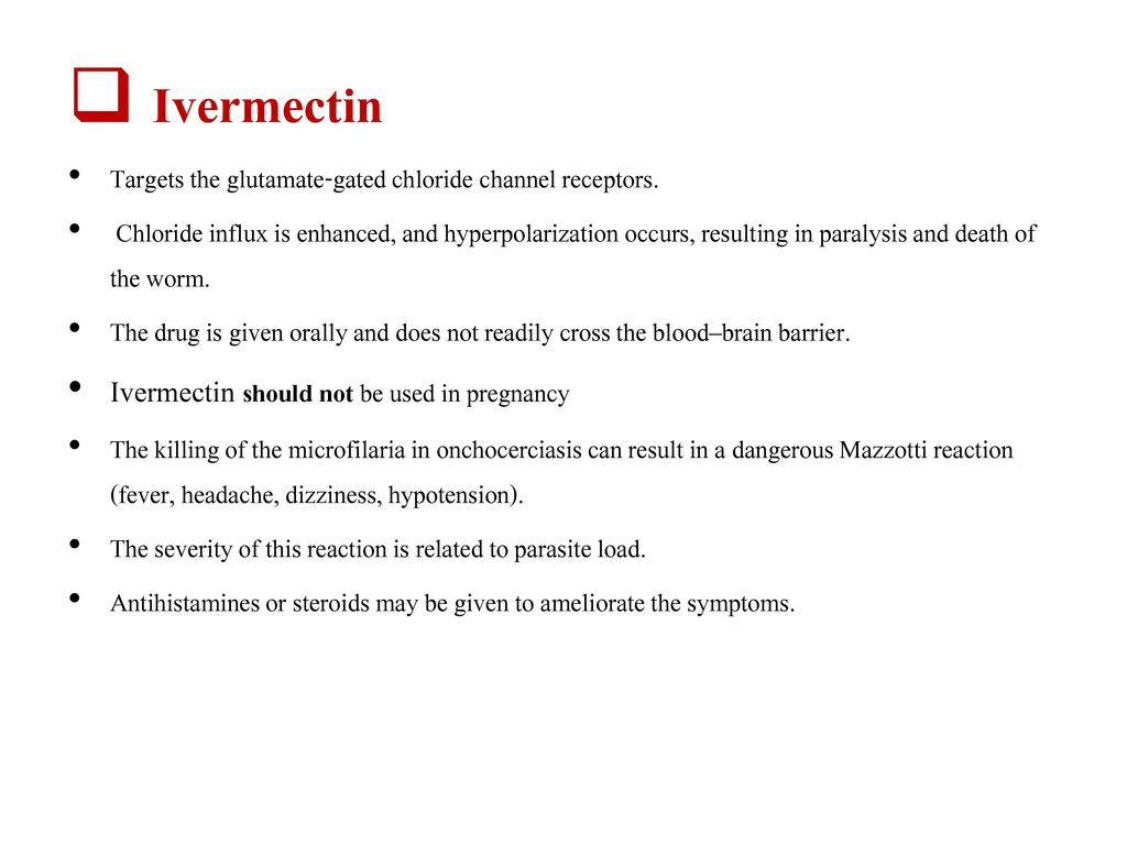 İvermektin, S.stercoralis ve O.volvulus tedavisinde kullanılır. GABA aktivitesini artırdığı için GABA agonisti ilaçlarla kullanılmamalıdır.