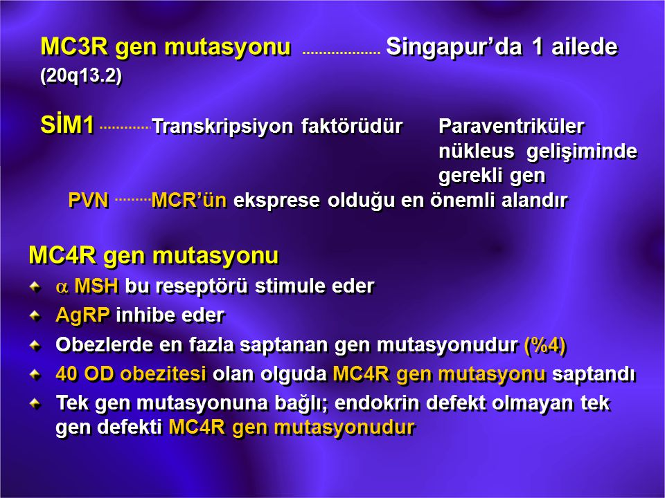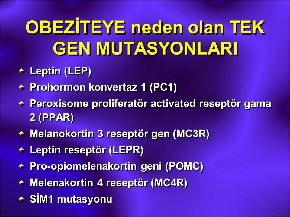 Toplumda obezite ile ilişkili en sık gözlenen mutasyon Melanokortin-4 reseptör (MC4R) mutasyondur.