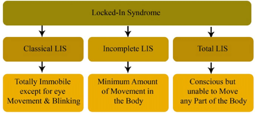 1-Classical form; Hasta göz kırpma ve dikey göz hareketleri dışında tüm vücut hareketlerinin kontrolünü kaybettiğinde saf bir formdan bahseder.