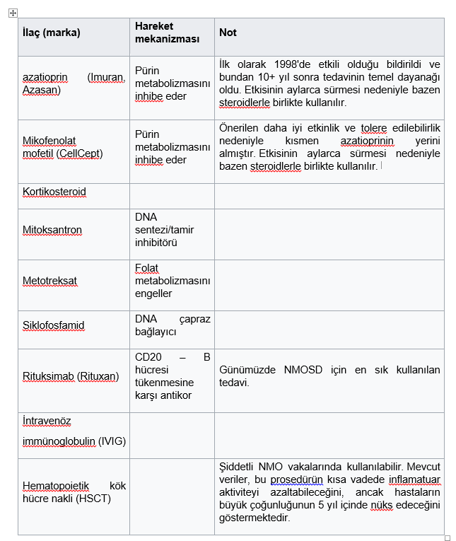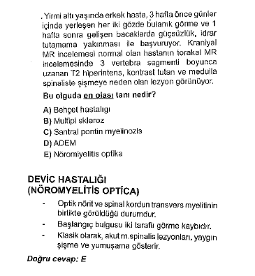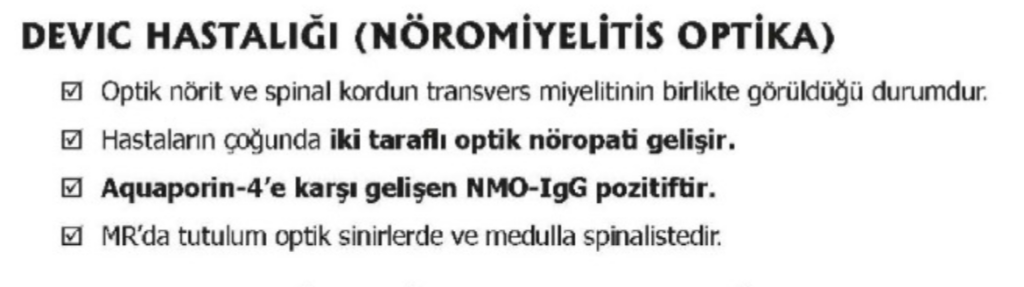 MS den tek farkı, saldıranın t lenfositleri değil “nöromiyelit optica immunoglobulin g” isimli antibodyleri olmasıdır.