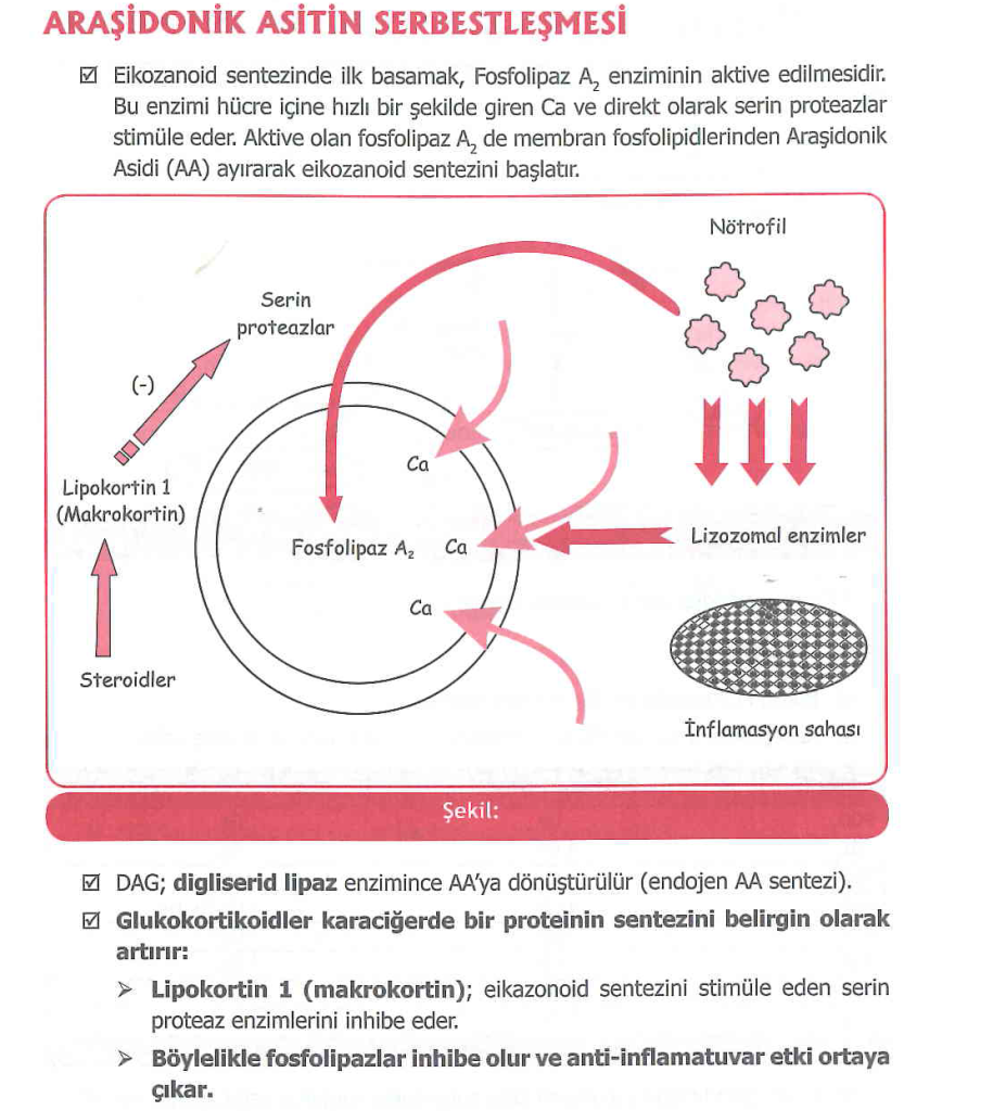 Araşidonik asitin serbestleşmesi sürecinde aşağıdakilerden hangisi rol almaz?