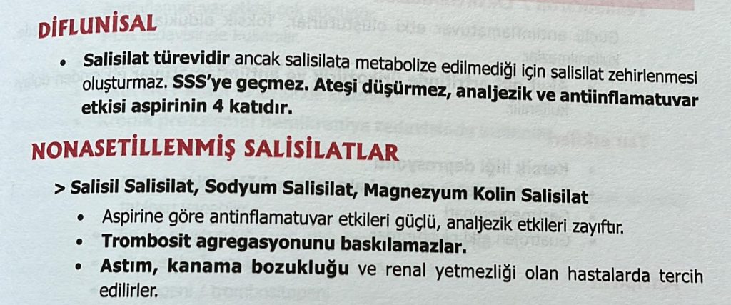 Diflunisal salisilik asit türevi ilaçtır, aspirin gibi doza bağlı yıkılır antiinflamatuvar ve analjezik etkilidir hatta aspirinden daha güçlüdür ancak beyne geçmez antipiretik değildir.