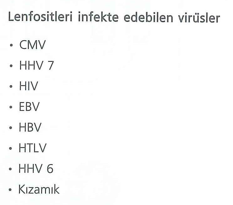 Lenfositleri infekte edebilen virüsler 8 Eylül 2023 yazar drtanjuyAşağıdakilerden hangisi lenfositleri infekte eden viruslerden değildir?a-HHV7b-HBVc-HCV **d-Kızamık virüsüe-HTLV