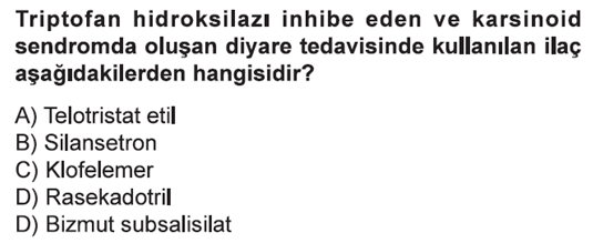 Bu yüzden karsinoid sendrom’da görülen diyare tedavisinde oktreotid ve lanreotid gibi somatostatin anologlarıyla birlikte kullanılır.