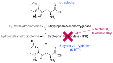 Telotristat, serotonin biyosentezinde hız sınırlayıcı adıma aracılık eden triptofan hidroksilazın bir inhibitörüdür