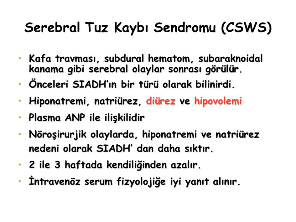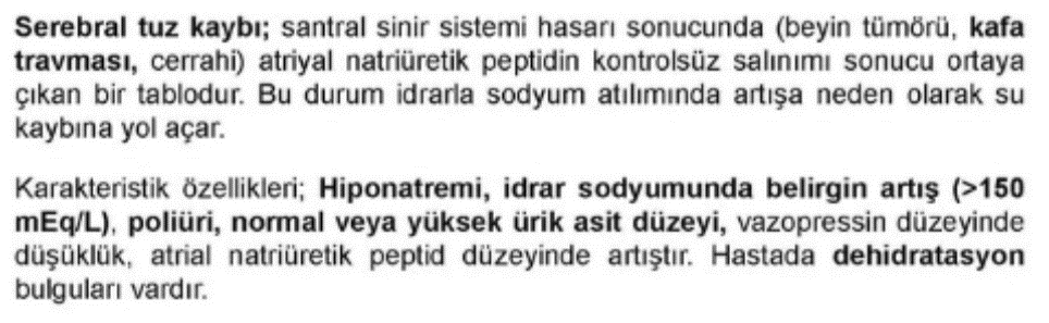 Serebral Tuz Kaybı: Atrial natriüretik peptit (ANP) hipersekresyonu sonucu oluşur. Santral nedenlere bağlı gelişir.
